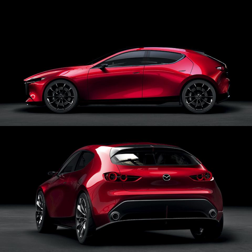 Mazda Kai совмещает в себе футуристические черты прототипа Vision Coupe и признаки городского хетчбэка — в результате получаем прообраз будущей Mazda 3. Японцы решили сделать машину еще более дерзкой и внешне, и по характеру, добавив улучшенные шумоизоляцию и плавность хода. Это будет первая Mazda с новыми двигателями Skyactiv‑X, которые получились на 10 % бодрее и на 20‑30 % экономичнее прежних.