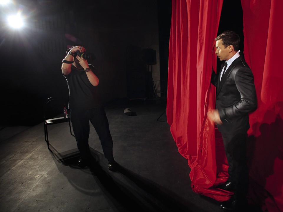 На съемке в ДК ЗИЛ П. Ю. Деревянко устроил настоящий театр одного актера: бегал с надувным «Оскаром», раскачивался, а потом падал со стула и даже читал стихи Пушкина, глядя в книгу Шекспира. За происходящим из зала помимо команды GQ наблюдали 20 кукол Барби,