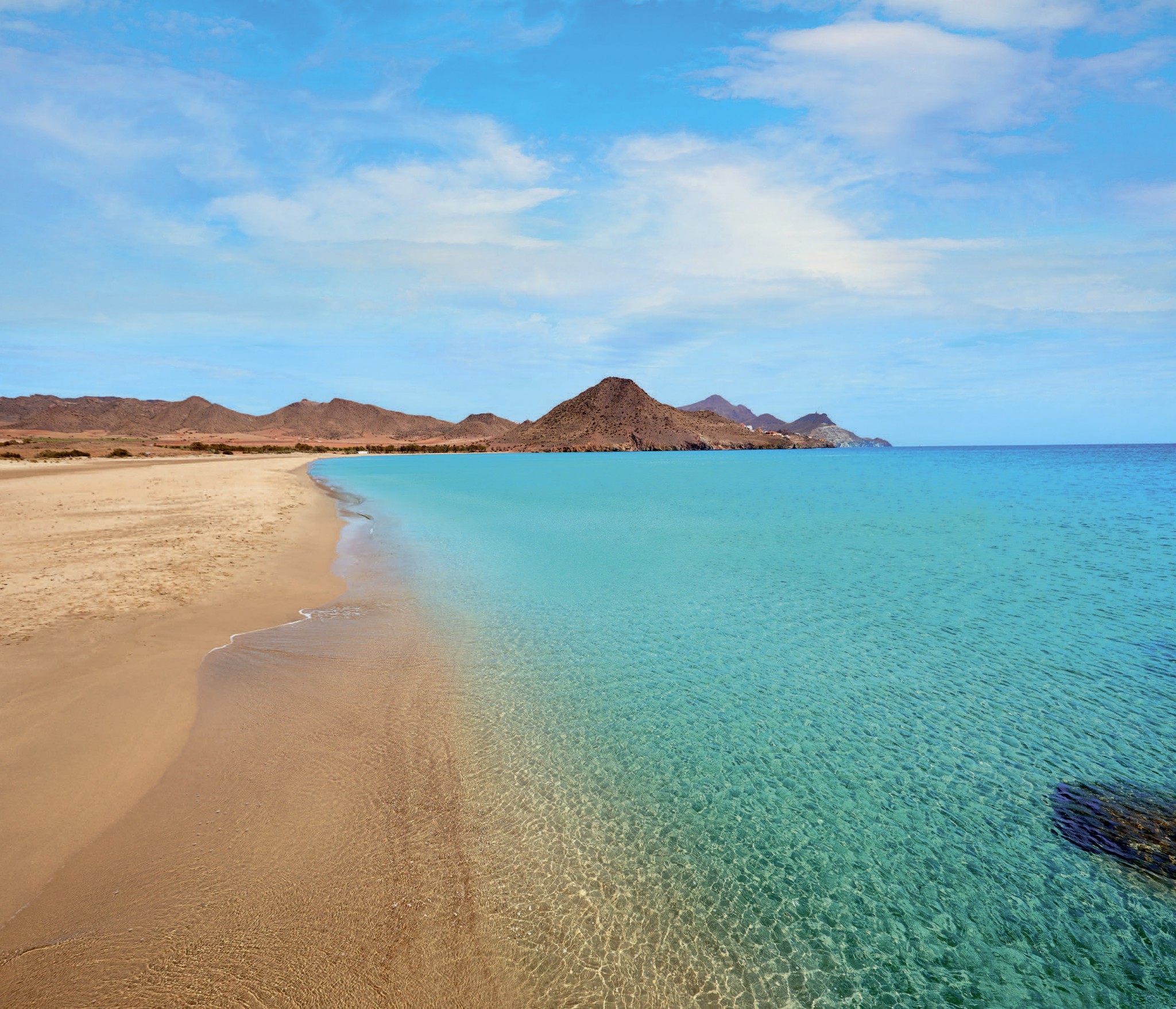 Недалеко от забитого под завязку одинаковыми гостиницами и отдыхающими андалусского побережья Коста-дель-Соль можно найти куда более аутентичные (а порой и вовсе пустынные) пляжи. Они располагаются в провинции Альмерия, в природном заповеднике Кабо-де-Гата. Именно благодаря охранному статусу здесь нет гигантских курортов, а значит, и многочисленных туристов.