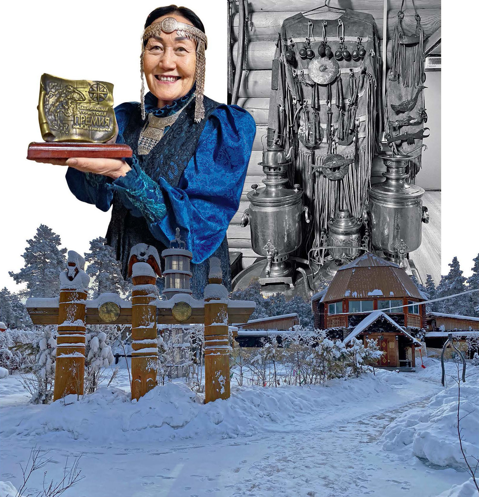 Валентину и Василия Атласовых в Якутске знают все. Они хранители традиций и популяризаторы локальной культуры. Их усадьба, превращенная в этнографический музей, – настоящая сокровищница с редкими артефактами: шаманскими костюмами, старинными сундуками, украшенными густыми орнаментами чоронами – сосудами для распития кумыса. Валентина лично встречает гостей и проводит для них обряд очищения алгыс. Чтобы задобрить духа огня, она отправляет в ритуальный костер конский волос, А затем «угощает» невидимого хранителя очага традиционными оладьями. Для туристов меню куда разнообразнее. Сын Атласовых, Николай, – известный в республике шеф-повар. Под его руководством на втором этаже работает ресторан с локальной кухней: салатом «Индигирка» из замороженного чира, строганиной и блюдами из жеребятины, которая в Якутии гораздо популярнее любого другого