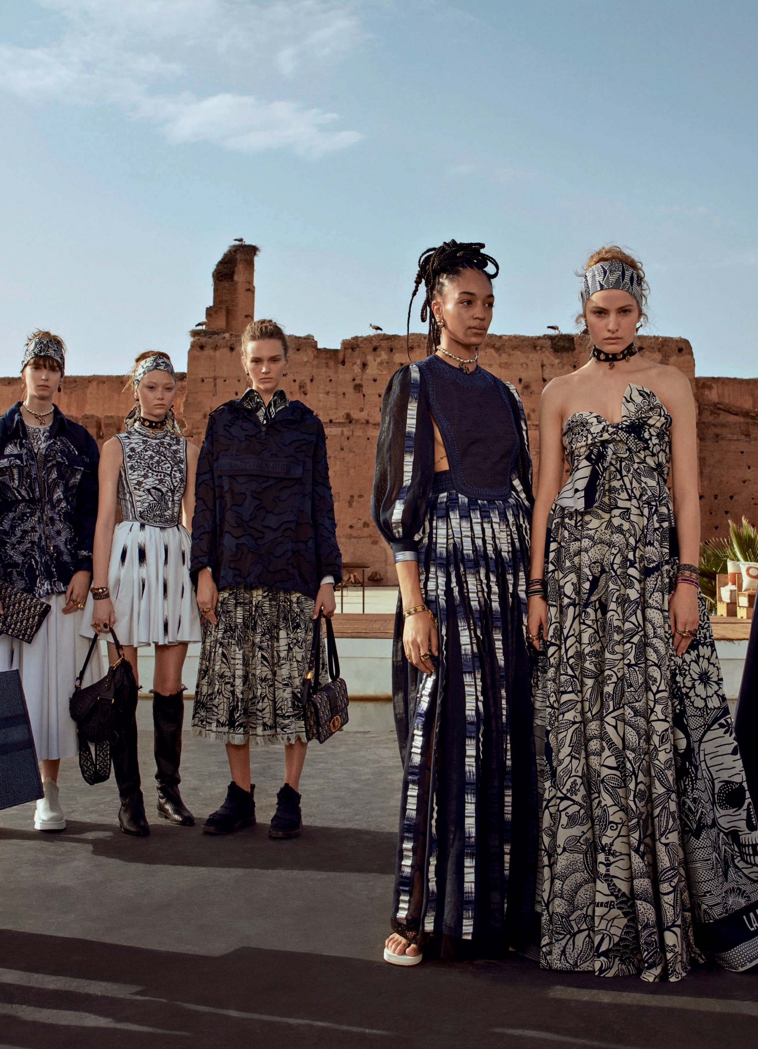 Недавно в Марракеше состоялся показ круизной коллекции Dior 2020. На шоу во дворце Эль-Бади слетелись гости со всего мира – и им было на что посмотреть! Эклектичный африканский город, конечно, выбрали неслучайно. Объединяющий мотив круизной коллекции – вощеные ткани с принтами, созданные в сотрудничестве с текстильной фабрикой Uniwax в Кот-д’Ивуаре. Креативный директор Dior Мария Грация Кьюри предоставила мастерам полную свободу – и результат того стоил: узоры с растительными мотивами, фрагментами Таро и многим другим можно рассматривать бесконечно! Над коллекцией поработало много «приглашенных звезд»: так, Пате’О, один из ведущих дизайнеров Африки, создал