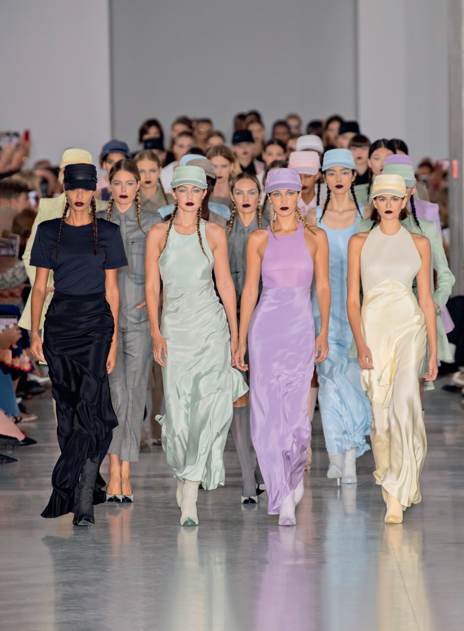 Одним из первых прошел показ Alberta Ferretti, где песочные тона, крупные панамы и тай-дай (да, нас ждет еще одно лето с психоделическими разводами) чередовались с темными готичными нарядами. По воле Max Mara крупные карманы и бермуды официально прописались в деловом гардеробе – а с ними однотонные серые и пастельные total looks. С особым нетерпением ждали вторую коллекцию Дэниела Ли в качестве креативного директора Bottega Veneta – дебют ученика Фиби Фило в прошлом сезоне стал утешением для поклонников old Celine, а аксессуары вроде сумки-«пельменя» и туфель с квадратным мысом, кажется, обрели статус культовых еще до того, как завершился показ. Вторая коллекция закрепила успех: новая интерпретация intrecciato, классического