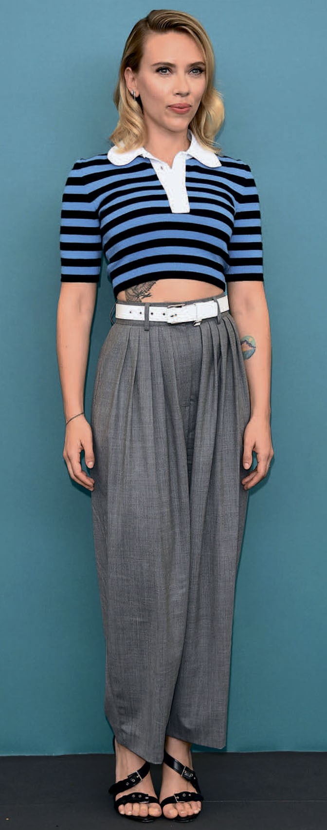 Алиса: «Конечно, образ кажется очень странным, но мне нравится, как смотрятся вместе эти брюки, ремень и топ. А вот босоножки я заменила бы на кеды или простые белые лодочки».