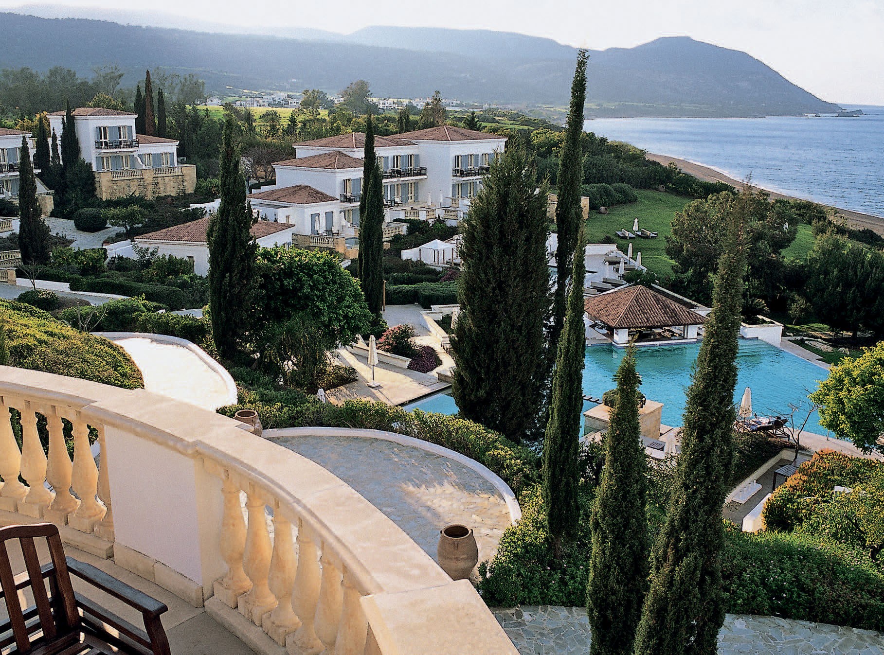 Курорт Anassa, расположенный на полуострове Акамас на северо-западе Кипра, в часе езды от аэропорта Пафоса, похож на византийскую деревню – такую, как мы ее себе можем представить: белые стены, черепичные крыши, деревянные двери и ставни. Все строения здесь не выше трех этажей, а на главной площади – церковь с колокольней. При этом все утопает в зелени, ведь отель находится на территории природного заповедника. Остановитесь либо в просторном номере в главном здании, либо на отдельно стоящей вилле (самая новая из них – двухэтажная резиденция Alcyone с панорамными видами на побережье и огромной террасой с камином на открытом воздухе). Подходящий вариант найдется как для пары, так и для большой семьи!