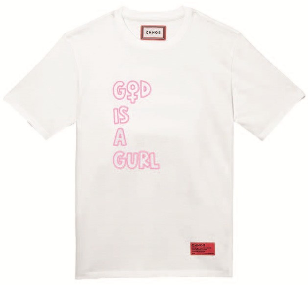 God is a Gurl – такой слоган вместе с земным шаром изображен на футболках из капсульной коллекции, созданной в рамках проекта модели Адвоа Абоа Gurls Talk и экомарки CHNGE.