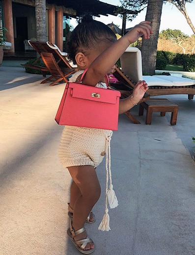 Видео недели: годовалая дочь Кайли Дженнер Сторми делает первые шаги по улице с розовой сумкой Hermeˋs Kelly.