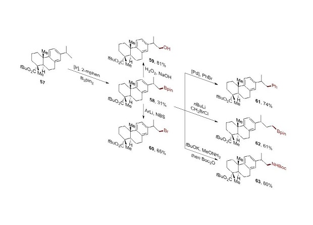 Химики из Университета Беркли под руководством Джона Хартвига (John Hartwig) предложили катализатор, с помощью которого можно селективно функционализировать углеводородную группу на конце молекулы. В группе Хартвига уже давно изучали процесс борилирования — взаимодействие с бис(пинаколато)дибороном, которое приводит к замещению одного из атомов водорода на пинаколборановый фрагмент (Bpin). Для активации С-Н связей используется катализатор — комплексы металла. Преимущественно в эту реакцию