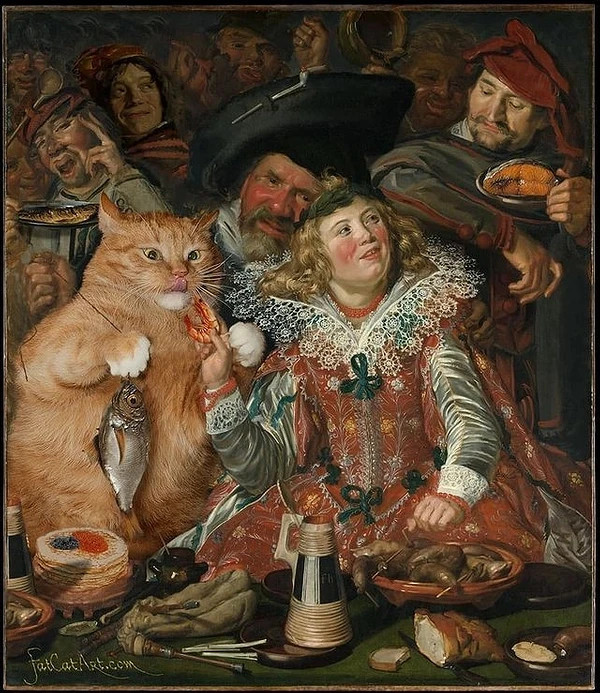 Хозяйка поместила своего рыжего кота на известные картины: он как будто всегда там был