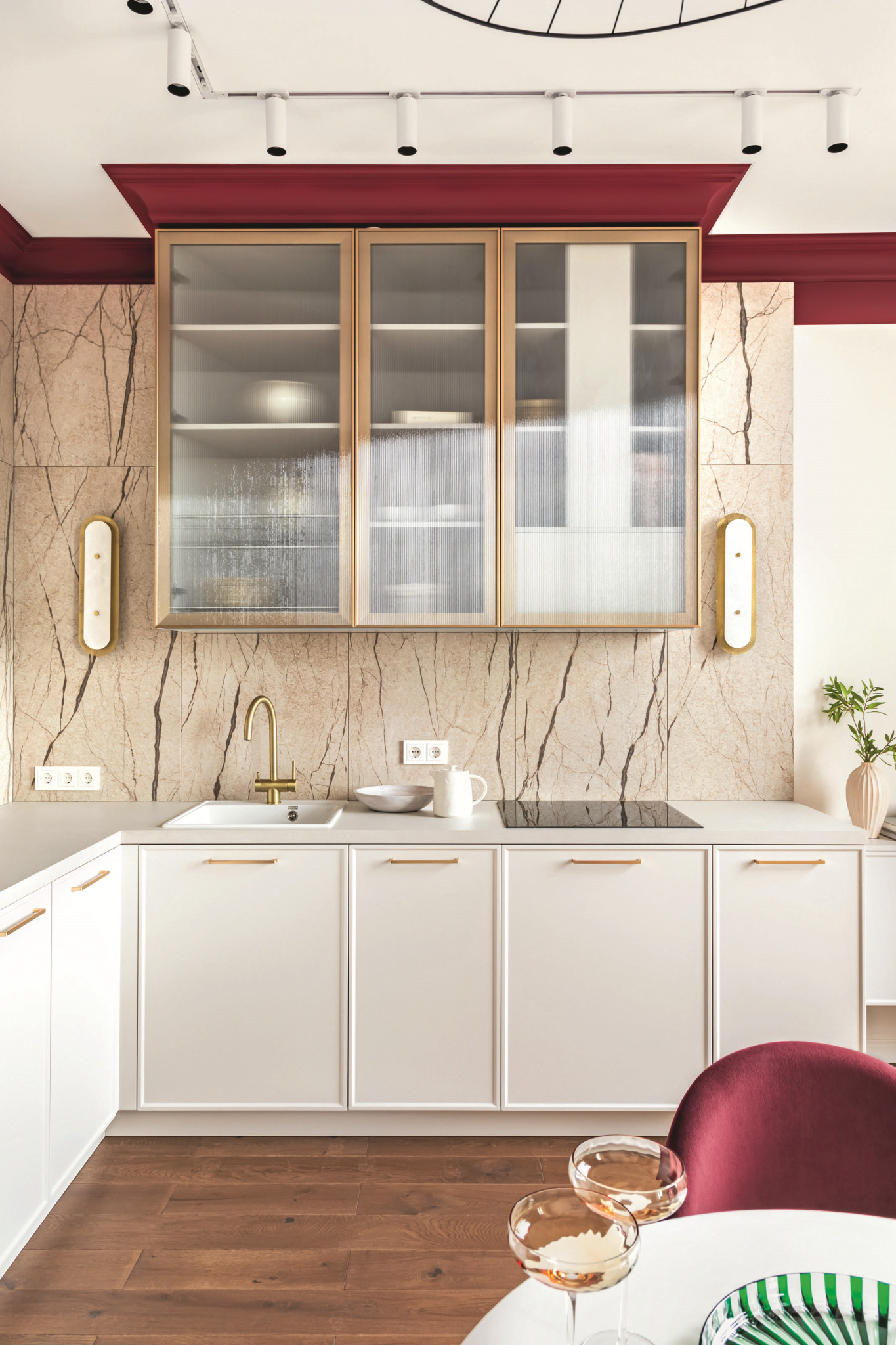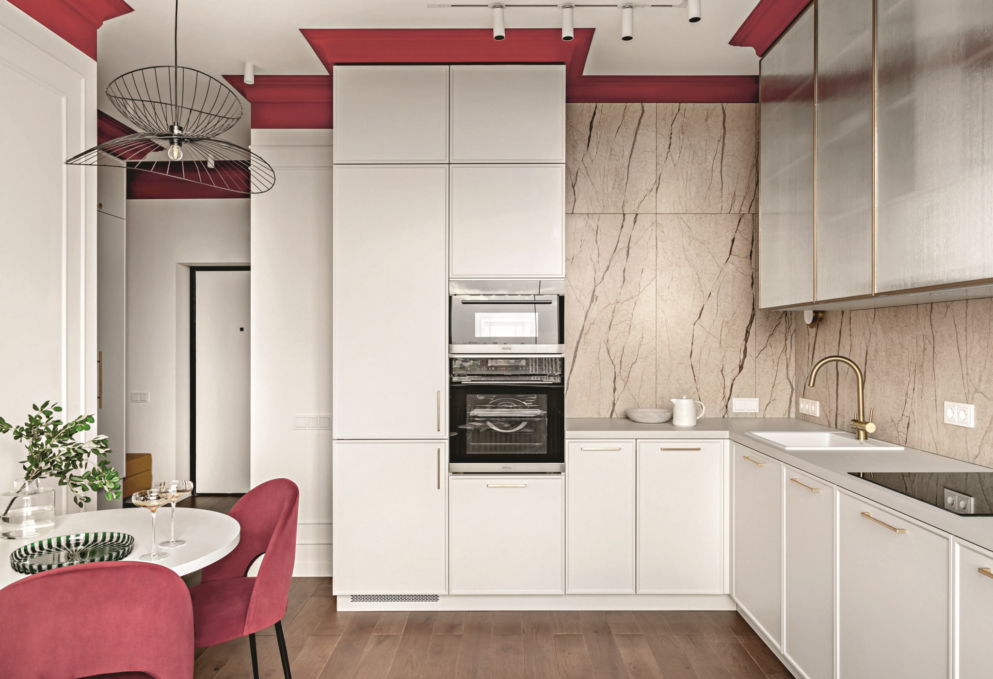 Квартира в современном московском ЖК выходит окнами на Москву-реку, Москва-Сити и Поклонную гору. Место оживлённое и удачное для сдачи квартиры в аренду. Для создания дизайн-проекта именно под эту задачу и его воплощения в жизнь заказчик пригласил архитектора Карину Алтунину. Вместе со своей командой она сделала интерьер, придя в который человек будет чувствовать себя как дома, пользоваться качественным ремонтом и предметами обстановки, переключаясь с бешеных ритмов города на расслабляющие оттенки бургунди.