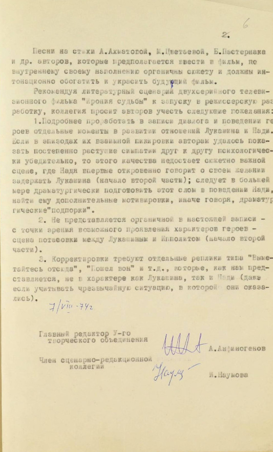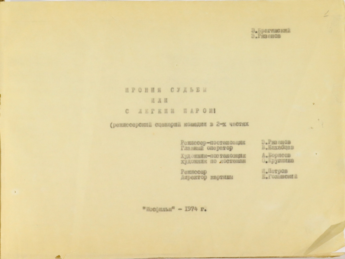 Спустя несколько лет за плечами тандема были «Берегись автомобиля» (1966), «Зигзаг удачи» (1968), «Старики-разбойники» (1971), «Невероятные приключения итальянцев в России» (1973) и телеспектакль «Сослуживцы» (режиссером последнего Рязанов не был, но позже, в 1977 году, по написанному им с Брагинским одноименному сценарию он снял культовый «Служебный роман»). Сделать паузу в совместной работе пришлось по вынужденной причине — в 1974 году Эмиль Вениаминович пережил инфаркт. Именно тогда Рязанов и задумался об экранизации современной сказки о подвыпившем враче.