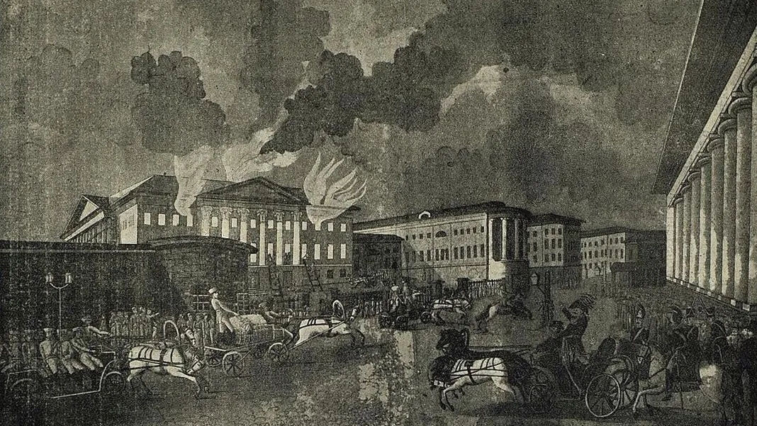 Во время Отечественной войны 1812 года главный корпус университета на Моховой улице сгорел. Были уничтожены все лаборатории, библиотека, в которую входило больше 20 тысяч книг, экспонаты музейных коллекций, учебные материалы. Из архива удалось спасти чуть больше 50 книг и 12 старинных рукописей. Московский градоначальник Федор Растопчин писал: «Приготовлять к отправлению следует самые только дорогие и значащие вещи, а прочие оставить до времени, так как и воспитанников, коих отправить можно будет после». Ректор Иван Гейм сумел найти лошадей и обозы, на которых вывезли большую часть профессоров и студентов. Однако некоторые из них покинули Москву пешком.