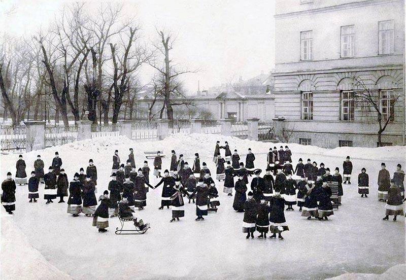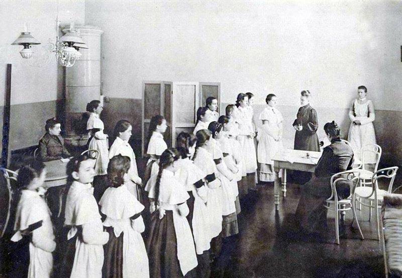 Температура в спальнях учениц не поднималась выше 16 градусов. Они рано ложились и вставали, спали на жестких кроватях, умывались ледяной водой из Невы. Все это должно было закалить девочек.