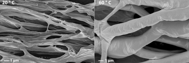 Для сокращения энергопотребления зданий ученые уже разработали термочувствительные полимеры, реагирующие на изменение температуры, например поли(N-изопропилакриламида), нижняя критическая температура которого равна 32 градусам Цельсия. Эта температура определяет переход от гидрофильных к гидрофобным свойствам материала, а ниже ее полимер смешивается с водой и раствор прозрачен, а при нагреве становится гидрофобным и отдает воду — визуально раствор мутнеет и хуже пропускает солнечный свет. Ранее при создании умных окон, однако, конструкторы акцентировали внимание только на изменении прозрачности структуры для солнечного света.