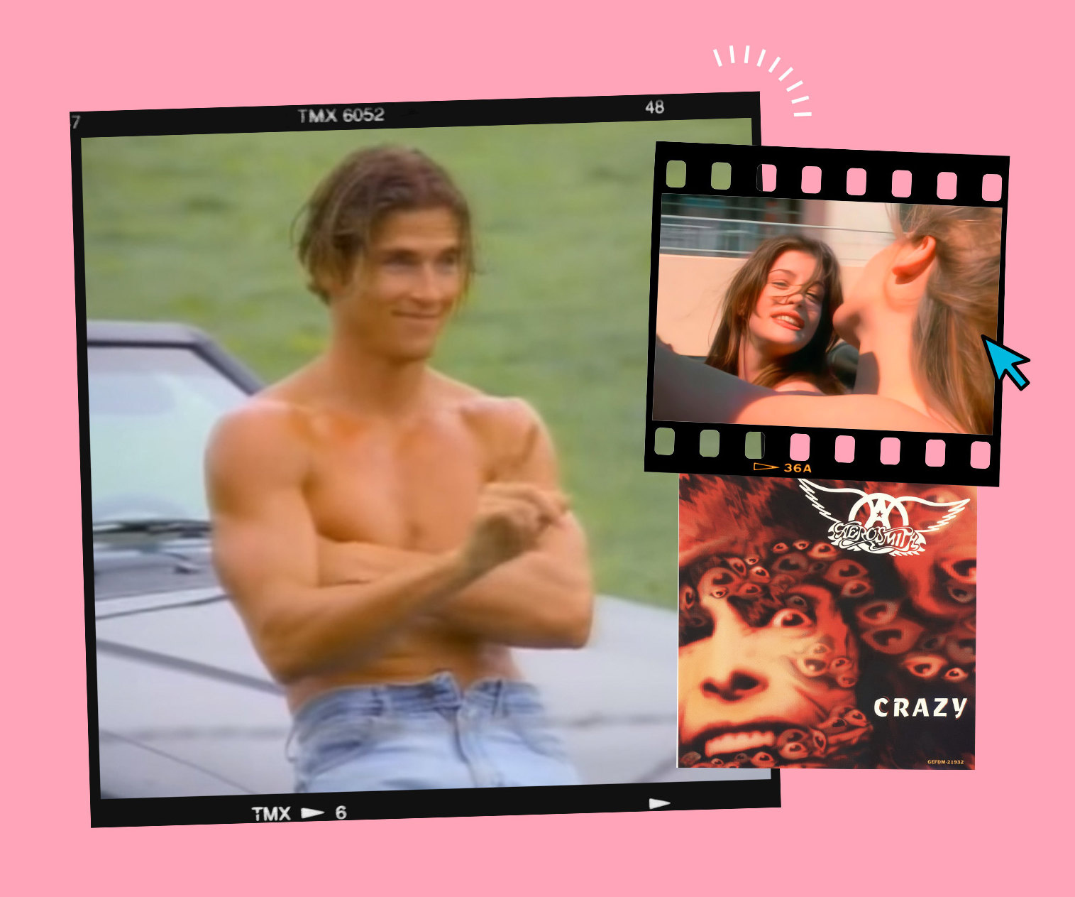 Клип на песню Crazy бостонской хард-рок группы Aerosmith в 1994 году стал абсолютным хитом MTV за считанные дни после премьеры и буквально подарла второе дыхание популярности музыкантам, гастролирующим с 70-х годов. Довольно длинное (более 6 минут!) видео рассказывает романтическую историю бегства из закрытой школы двух подружек, которых играют Алисия Сильверстоун и Лив Тайлер. Девчонки ищут (и находят!) веселые приключения на свои, как говорится, вторые девяноста. В финале барышни очаровывают привлекательного фермера, который жнет поле топлес. Тот бросает свой комбайн и прыгает в кабриолет школьниц, чтобы затем принять участие в купании нагишом. Комбайн продолжает ездить по полю сам по себе и,