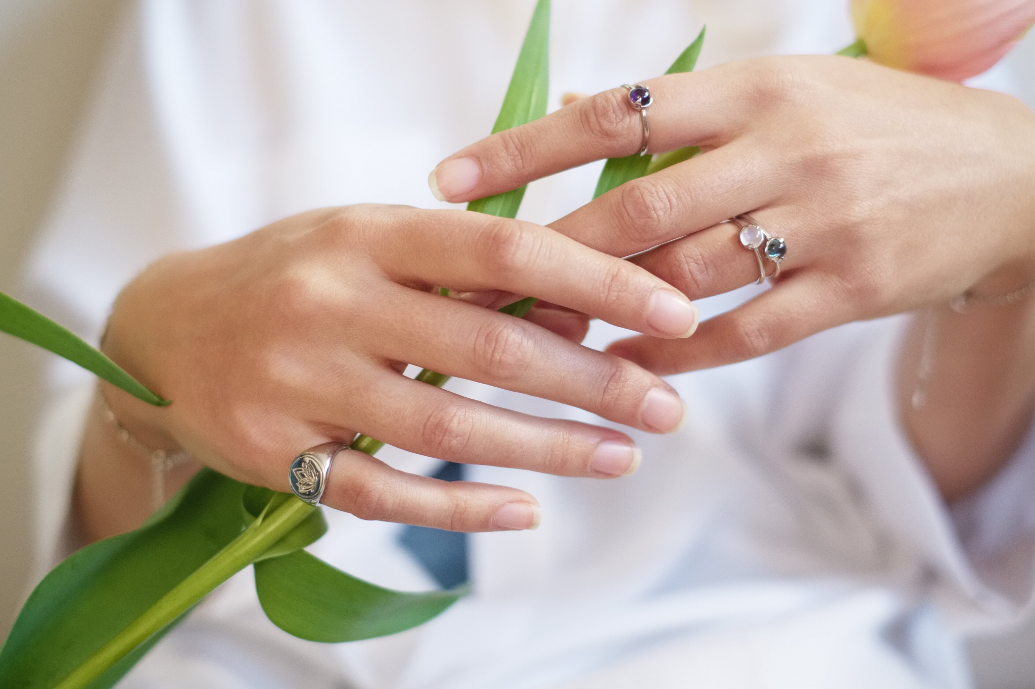 Если пока не осмеливаешься выгуливать бриллианты каждый день, сочетай на одной руке кольца разных стилей — с полудрагоценными камнями, массивные и минималистичные, серебряные и золотые. Для офисных будней выбирай лаконичные украшения, которые не будут конфликтовать друг с другом и с образом в целом.