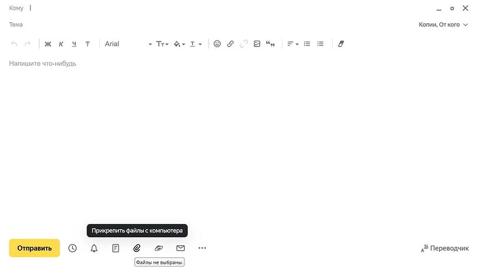- Для отправки файлов писать что-то в самом письме не обязательно, но, как минимум, поздороваться и объяснить, какие файлы вы отправляете, все-таки стоит.