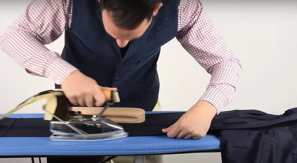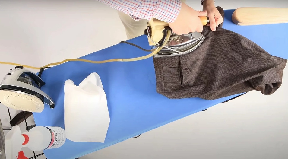 Понятное руководство по созданию стрелок утюгом и парогенератором на мужских брюках.