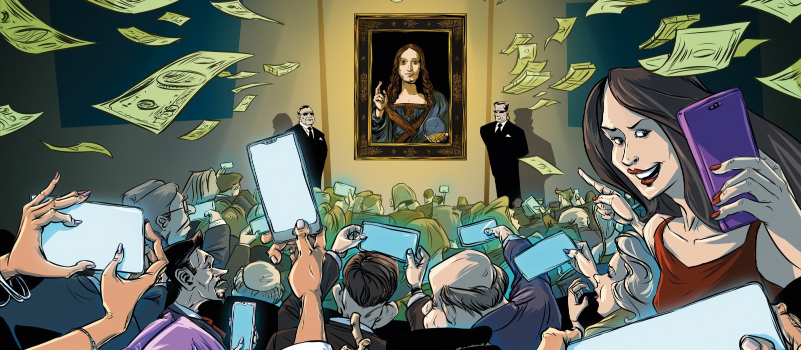 Вечером 15 ноября 2017 года торги прошли совсем не так, как здесь привыкли, – битва за картину Леонардо да Винчи «Спаситель мира» длилась бесконечные 20 минут и обернулась самой дорогой в истории продажей предмета искусства: полотно 66 на 45 сантиметров ушло за 27 миллиардов рублей. В зал набилось более тысячи человек, за аукционом следили коллекционеры со всего мира – и все понимали, что стали свидетелями исторического момента. Взгляды были обращены к картине, история которой до, во время и после торгов напоминает боевик Гая Ричи.