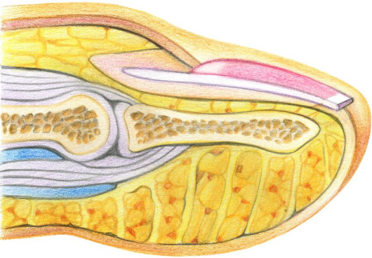 В этом случае избавиться от причины невозможно, придется укреплять ногтевую пластину снаружи.