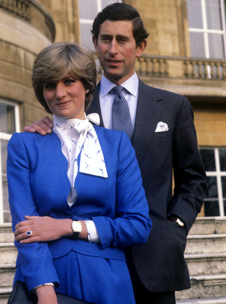 Пара приветствовала фотографов в садах Букингемского дворца. Молоденькая невеста держала жениха под руку и выглядела крайне смущенной. После этого британцы окрестили ее «Застенчивой Ди». Спенсер выбрала костюм Cojana, который буквально накануне в спешке купила в универмаге Harrod's. Роман Дианы и Чарльза вряд ли можно назвать страстным. Они встречались полгода и за это время виделись только 13 раз. Чарльз не заказывал эксклюзивное помолвочное кольцо, как это было принято в аристократических кругах. Вместо этого невеста выбрала его из каталога. То есть, такое же могла позволить себе любая состоятельная британка. Именно поэтому знаменитое украшение с сапфиром даже назвали «кольцо простолюдина».