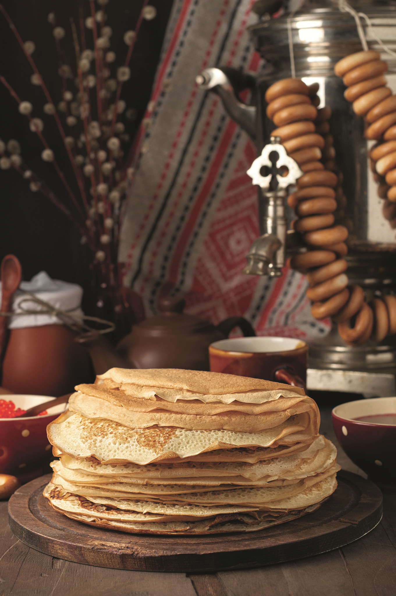 Символизм блина и правда зашкаливает. Еще с древних, языческих, времен он был чем-то вроде ритуального знака, который сопровождал человека всю его жизнь. Перед тем как младенец появлялся на свет, его мать непременно ела блины, а когда приходило время отправиться в мир иной, они были на столе на поминках. Так что, с одной стороны, блин был этаким микрокосмосом, который напоминал всем нам, бренным созданиям, о скоротечности времени. А с другой – румяный и ароматный, он воплощал в себе жизнь во всей ее мощи, силе и полноте.