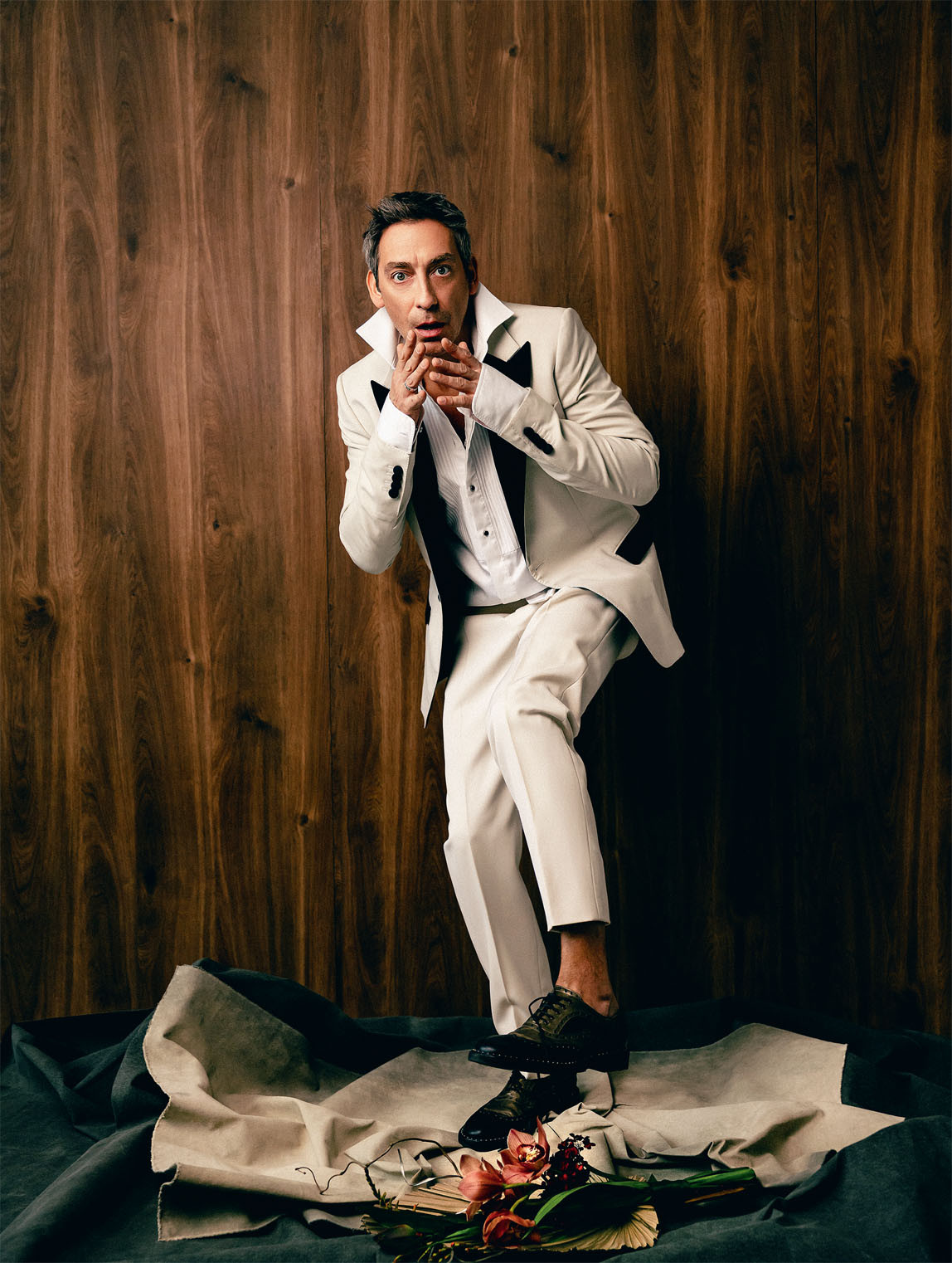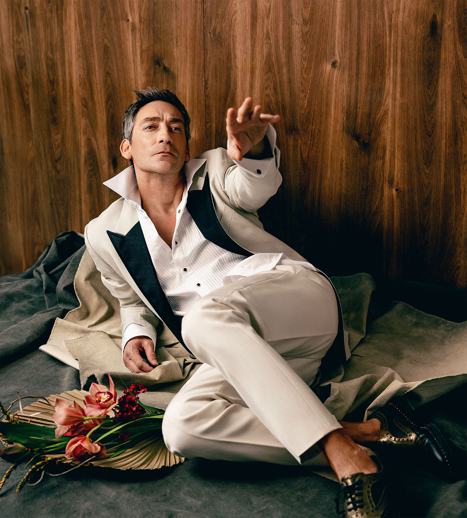 Рубашка Cerca Trova, смокинг Dolce & Gabbana, брюки Saint Laurent, обувь Dolce & Gabbana
