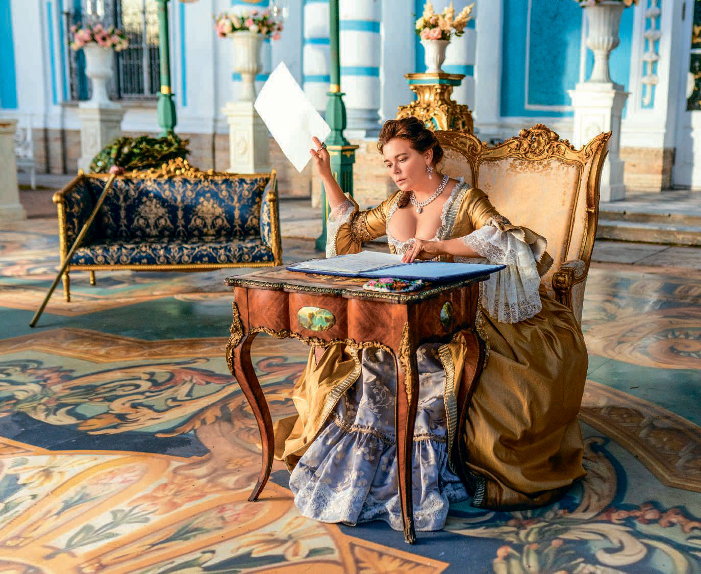 — Да? Рост совпадает сантиметр в сантиметр — 157. Мне пришлось из блондинки перекраситься в брюнетку. А вот нос подвел. Если бы я была продюсером или режиссером, я настаивала бы на пластическом гриме. Но это на самом деле не так важно, как то, что я смогла к этому прикоснуться. Благо, что у меня были время и возможность к этому тщательно подготовиться. Имелись доступы к ее архивам, письмам, документам, ее пьесам. Знаете, тогда же совершенно другая бумага была! Мой приятель, который занимается ручным книгопечатанием в Санкт-Петербурге, дал мне три листочка, сделанных по технологии того времени. Вернее, я выцыганила. Это настоящее чудо... И в Российскую национальную библиотеку в Питере меня пустили и позволили подержать в руках грамоту о даровании дворянства и фамилии Оспенный — ее Екатерина вручила мальчику Саше, от которого она привилась. Я видела библиотеку Вольтера, которую она целиком выкупила. А в Москве в Ленинке девчонки дали ее письма. У меня ко многому был доступ! Мной была проделана большая работа, мне кажется — на благо. Сценарий был написан не вполне корректным языком, и мне пришлось вставлять из ее писем и записок цитаты, которые подходили в наши диалоги. К счастью, Егор Анашкин, наш режиссер, меня в этом смысле очень поддерживал...