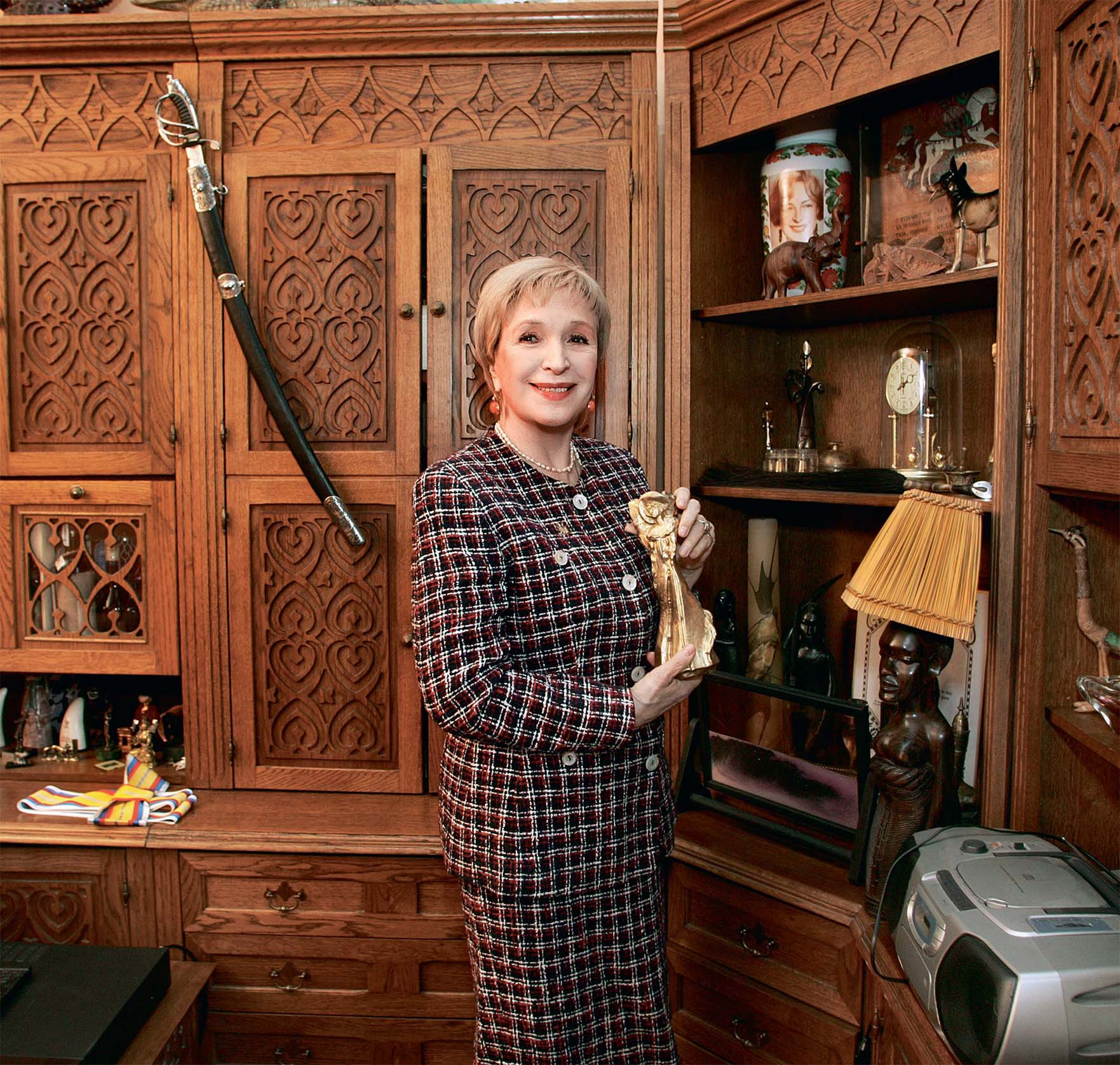 Клара Степановна показывает выставленные на шкафах и стенах почетные грамоты, фестивальные дипломы, фотографии с коллегами и семейные — с мужем, дочерью Оксаной, внуком Сашей, а еще подарки. Например, хрустальный храм от президента Белоруссии Александра Лукашенко, памятные медали, сувениры.