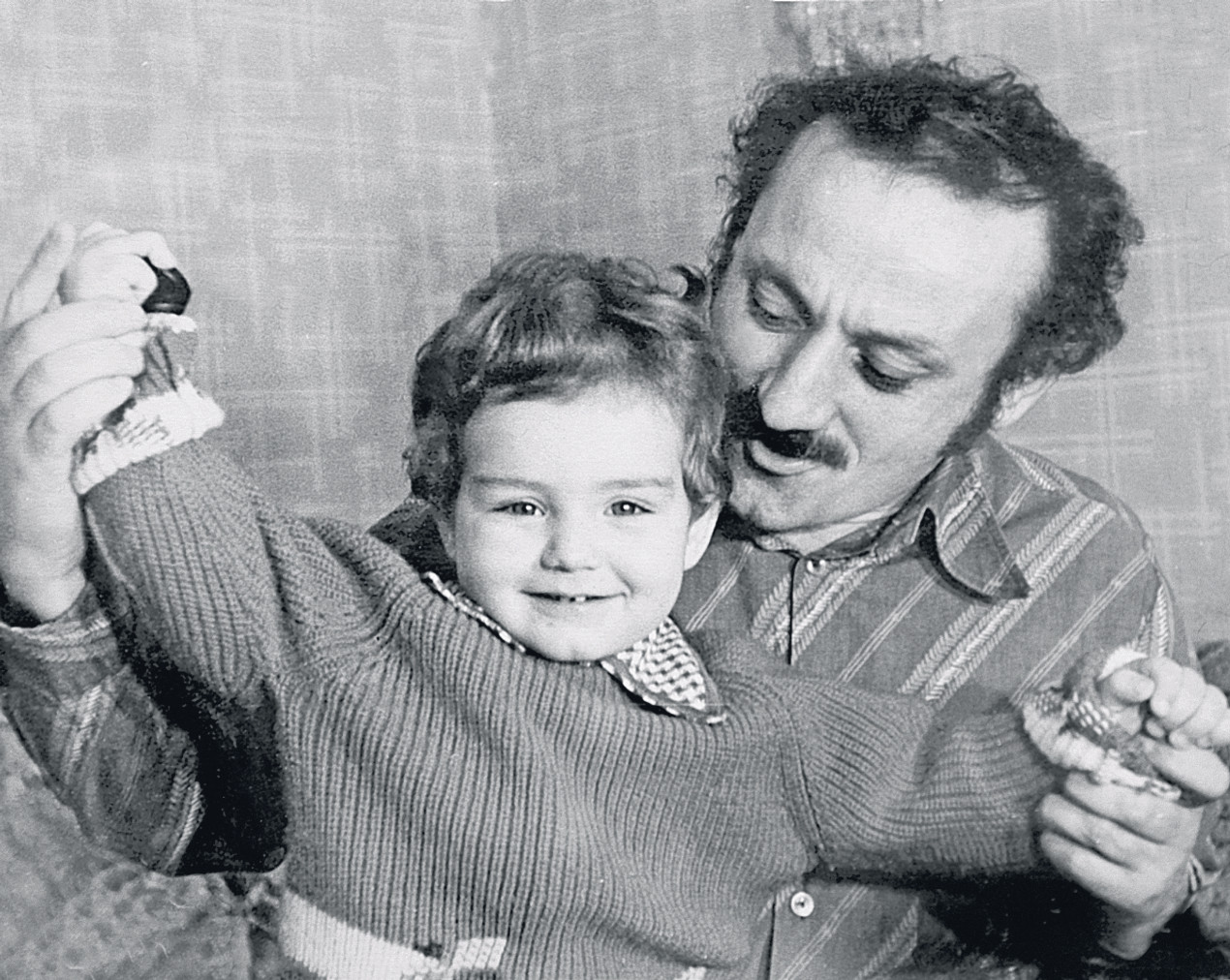 — Ну я могу сказать, если мне отрастить сейчас усы и похудеть килограмм на двадцать, то я буду очень похож на папу. Однажды я снимался в роли, где мне приклеили усы, посмотрел в зеркало — вылитый папа.