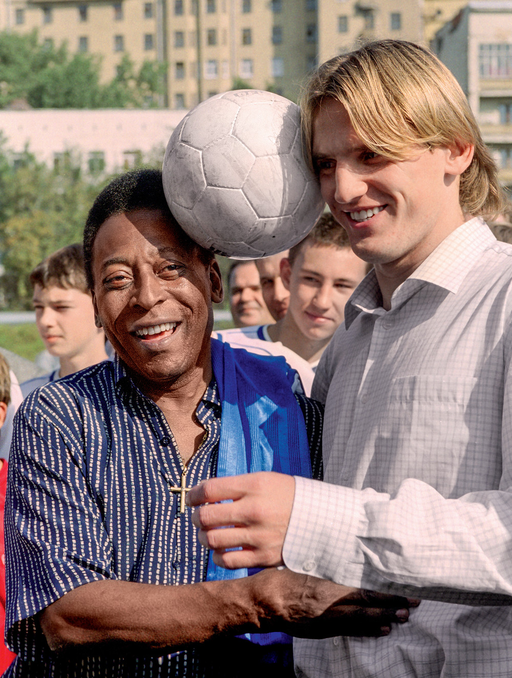 Спортивные функционеры, узнав о том, что знаменитость посетит Россию, организовали обширную программу. Я тогда работал в журнале «Огонек» и вместе с Володей Никулиным освещал визит единственного в мире трехкратного чемпиона мира по футболу, экс-министра спорта Бразилии, которого Международный олимпийский комитет официально признал величайшим спортсменом XX века. А ведь еще Пеле — киноактер, телекомментатор, бизнесмен, автор и исполнитель собственных песен.