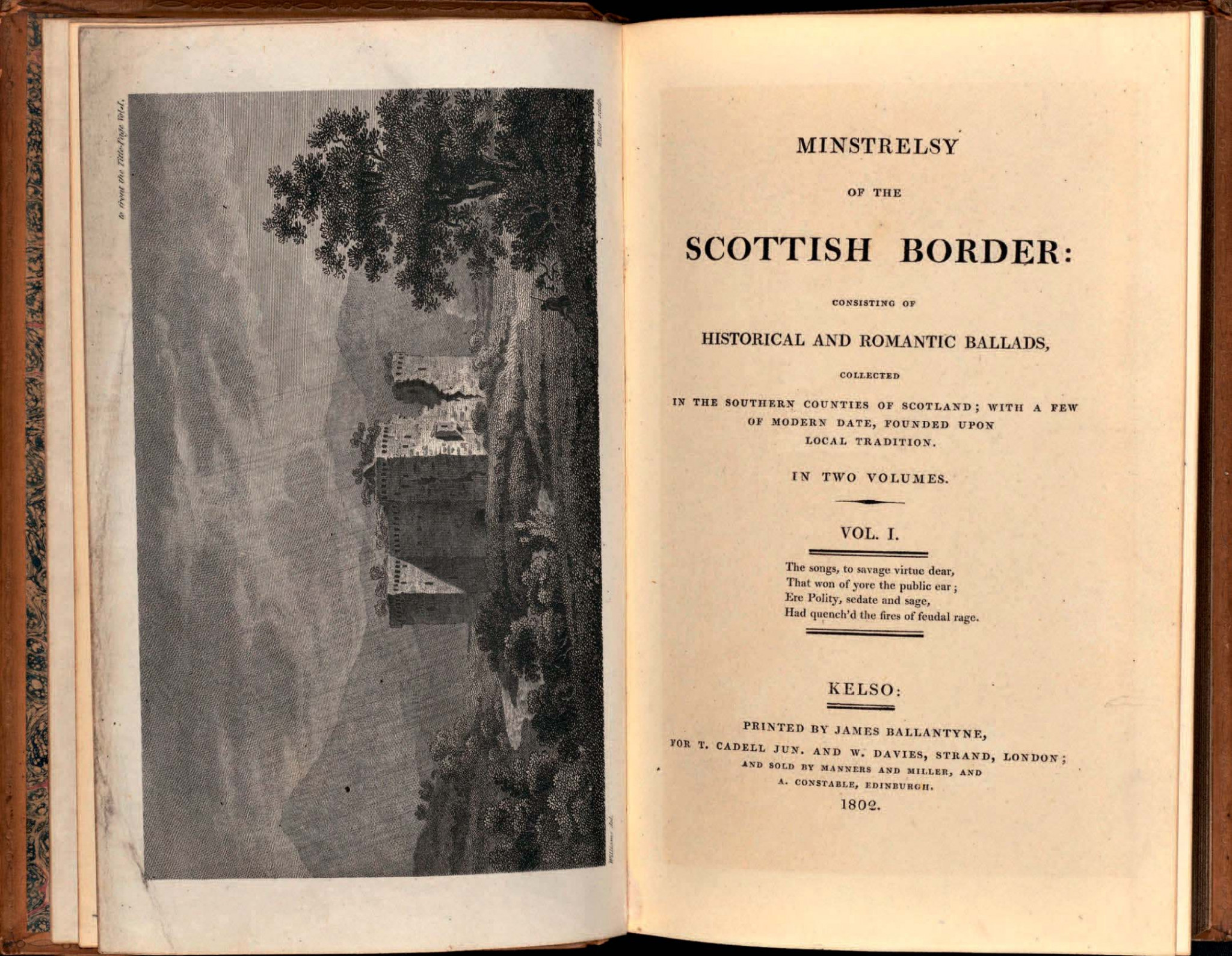 В 1799-м исполнилась его мечта: он получил должность шерифа графства Селкиркшир, позволившую забыть о наскучившей адвокатуре. Жалованье невелико — триста фунтов в год, но и обязанности не слишком обременительны. Свободное же время полностью принадлежало ему. И Вальтер отлично знал, на что его потратит: еще со времен ученичества в отцовской конторе он страстно увлекся собиранием старинных шотландских баллад. Отправляясь в горы по служебной надобности, молодой стряпчий неизменно прихватывал бочонок бренди для будущих «респондентов» и бутыль чернил для себя. Ну а перья для письма всегда можно было выдрать из хвоста свежеподстреленной вороны или цапли. Покончив с делами, он сворачивал на какую-нибудь узкую тропку, ведшую к забытой богом деревеньке или дальнему пастбищу. Ночевал в хлеву, а то и под открытым небом, пил из ручьев, питался сухими лепешками, но не было случая, чтобы он возвратился домой без очередной исписанной тетрадки.