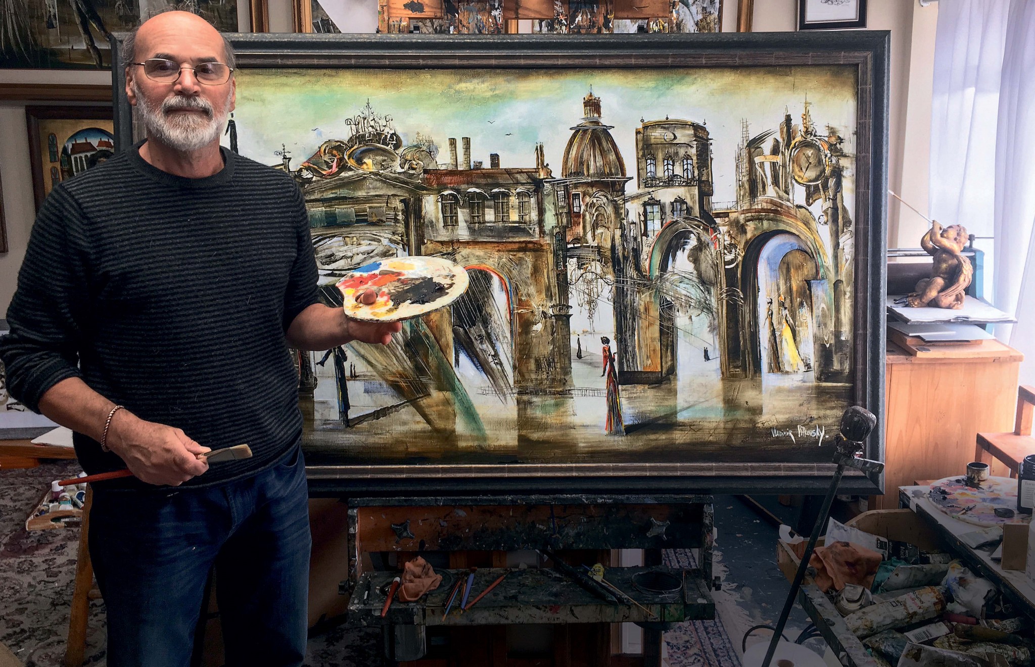 Бывший петербуржец, он неизменно поправляет: «Ленинградец!» Бывший моряк-подводник, он учился в трех разных художественных заведениях. Выставлялся в США, Канаде, многих странах Европы... Одна из его работ — портрет Иосифа Бродского — из США скоро переедет в музей поэта «Полторы комнаты» в Петербурге.