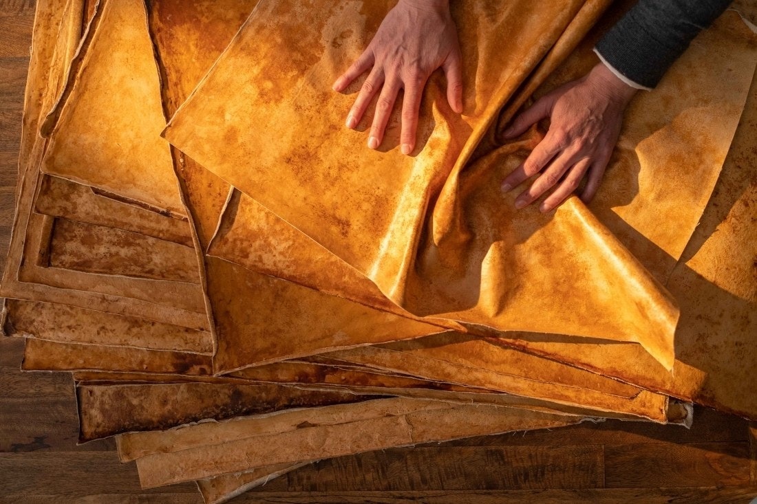 Среди других альтернатив натуральной коже можно выделить еще кокосовую и грибную. Последнюю получают из мицелия, то есть тела гриба, имеющего весьма плотную структуру. Художник Фил Росс учился выращивать такую кожу еще в 1990-е и изначально использовал ее для создания скульптур. Однако со временем он так продвинулся в этом деле, что основал компанию Mycoworks, занимающуюся созданием экокожи из рейши (он же трутовик), подключил к своим разработкам биологов, инженеров и дизайнеров,