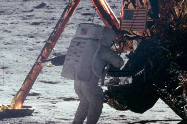 После первого полета на Луну американских астронавтов, долгое время считалось, что фотографий Нила Армстронга на Луне - не существует. Откуда им взяться? Ведь камера практически всегда находилась у него. Ан нет. В 1987 году ведомству НАСА все же удалось найти единственный снимок. Оказалось, пока Армстронг занимался сбором образцов породы, камеру взял Эдвин Олдрин и сделал панорамный снимок. Именно из этой панорамы и сделали фото с Армстронгом.