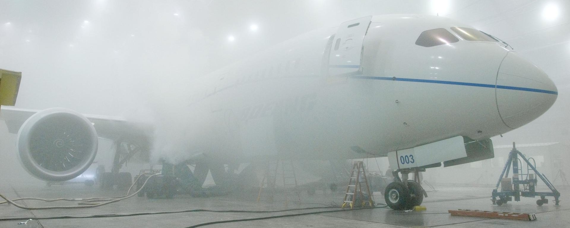 Кроме того, разработчики Dreamliner отказались от традиционной системы отбора воздуха от двигателей для поддержания заданного давления в салоне и защиты от обледенения крыла. Теперь воздух в салон нагнетается электрическим компрессором, а крыло подогревается термоэлементами.