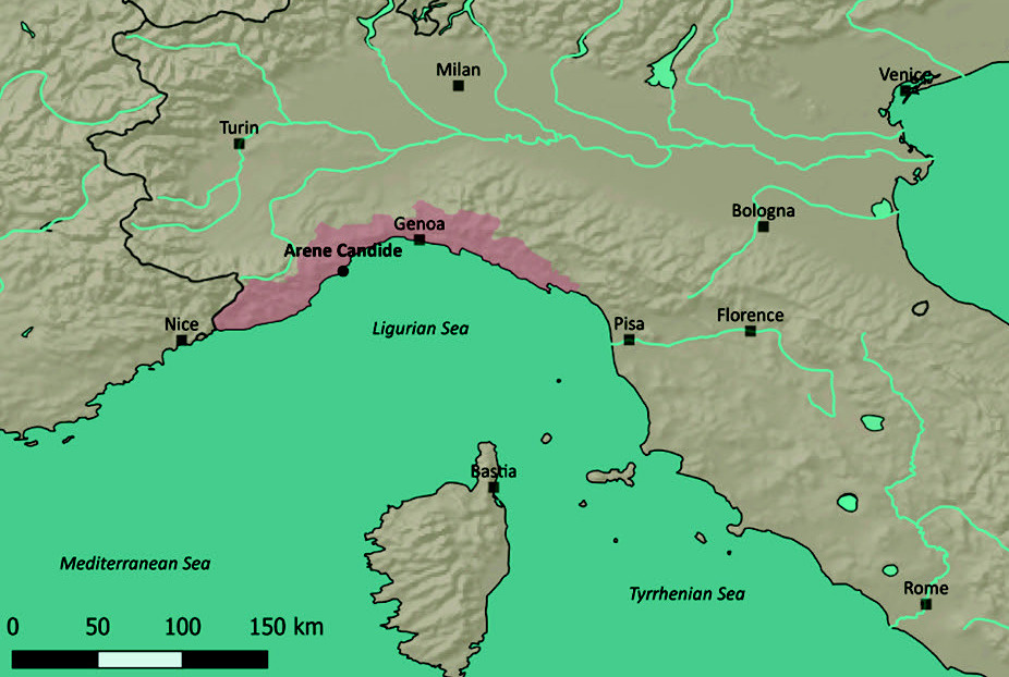 На северо-западе Италии, на побережье Лигурийского моря, находится известный археологический памятник Арене-Кандиде, открытый еще в середине XIX века. За долгие годы исследований этой пещеры, систематические раскопки которой начались в 1940-х годах, ученые обнаружили там огромное количество находок, самые древние из которых относятся к эпохе палеолита. В частности, археологи выявили там больше сотни захоронений каменного века, подавляющее большинство которых относится к эпохе неолита (примерно 7,3–6,3 тысячи лет назад) и финалу эпохи верхнего палеолита (около 12,9–11,6 тысячи лет назад).