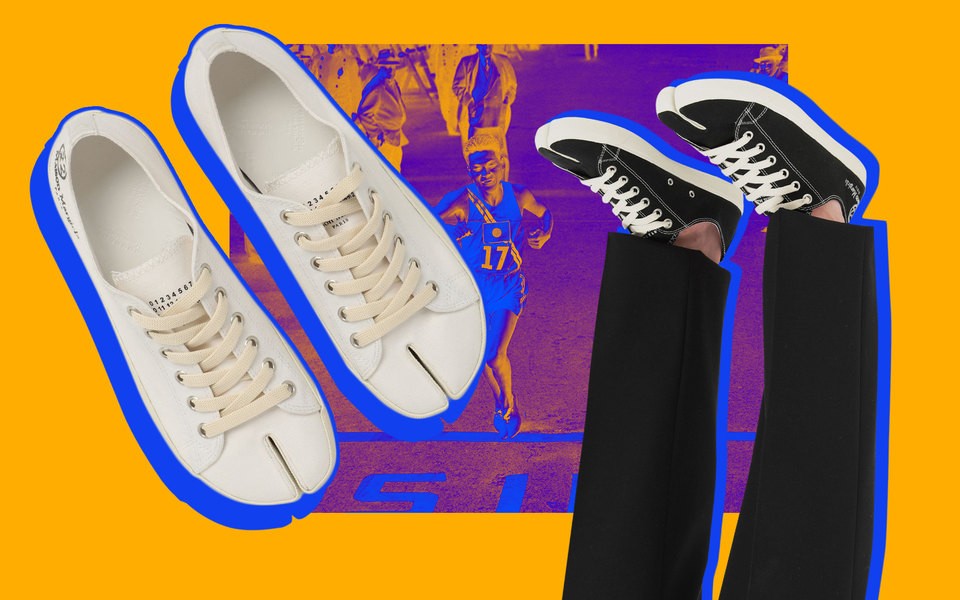 Среди брендов большой моды, которые в последние годы экспериментируют с кроссовками, Maison Margiela стоит особняком — самые интересные и радикальные эксперименты со спортивной обувью часто получаются именно у них. Они уже рвали кроссовки и заливали клеем (выведя жанр distressed sneakers в категорию почти музейного объекта), выпускали буквально кроссовки-грязный носок (совсем свежий эксперимент в жанре pre-dirty sneakers). А теперь они скрестили кеды с «таби» — одной из самых узнаваемых вещей в истории бренда.