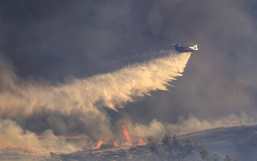 В борьбе с огнем помогала частная компания Coulson Aviation с флотом из 30 вертолетов и самолетов, с которой за несколько недель до случившегося заключил договор начальник управления пожарной охраны округа Ориндж Брайан Феннесси. На тушении пожара работал тяжелый военно-транспортный вертолет Boeing CH-47 Chinook. В грузовом отсеке машины установлен вместительный танкер на 11 000 литров воды, который набирает воду прямо из рек, озер или океана. Для набора воды используется специальный сбрасываемый насос.