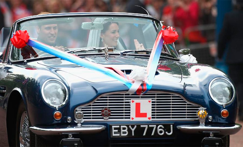 29 апреля 2011 года принц Уильям женился на героине светской хроники Кейт Миддлтон. После церемонии в Вестминстерском аббатстве и поездки в конном экипаже в Букингемский дворец на прием королевы их королевские высочества, герцог и герцогиня Кембриджские, прокатились по Лондону на Aston Martin DB6 MKII Volante цвета Seychelles Blue. Этот автомобиль королева в 1969 году подарила отцу Уильяма принцу Чарльзу на его 21-й день рождения. Как писала пресса, королевская пара сделала это, чтобы поблагодарить лондонцев и тех, кто приехал со всего мира, чтобы хотя бы краем глаза взглянуть на их свадьбу (то есть вместо того, чтобы пригласить всех на послесвадебную вечеринку). На номерном знаке Aston Martin было написано Just Married.