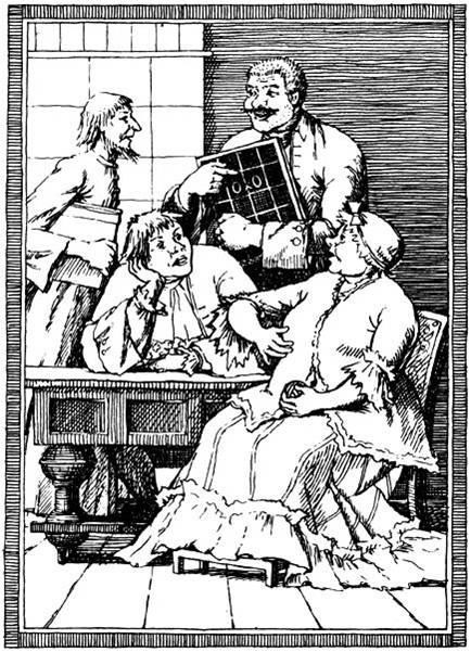 Сегодня эта сцена уже не звучит так гротескно-комично, как в XVIII веке, — сложно оценить, сколько же съел Митрофанушка. На самом деле «ломтик» — то есть ломоть — означал кусок толщиной в палец или дюйм (2,5 см), отрезанный вдоль всего хлеба, окорока, сыра. То есть три ломтика солонины — это примерно 600–750 граммов весьма тяжелого для желудка мяса. Подовый пирог делали с начинкой — из мяса и лука или капусты с яйцами. По весу подовый обычно достигал фунта (409 граммов), а шесть подовых — это 2,5 килограмма. Кувшин кваса в среднем был 3 или 5 литров. После такого плотного ужина Митрофан «протосковал» и на завтрак съел еще пять булочек (по меркам того времени — около 1 килограмма).