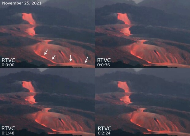 На канарском острове Ла-Пальма в 2021 году извергалась очень текучая лава — к такому выводу пришли геологи, понаблюдав за вулканом со смотровой площадки, изучив видеосъемку местного телевидения и проанализировав образцы пепла. Вязкость магмы Кумбре-Вьеха оценили с учетом химического состава, кристалличности и температуры. Работа показала, что вулкан выливал базанит с одной из самых низких вязкостей для исторических извержений на Земле, демонстрируя значения от 10 до 160 паскаль-секунд при температурах от 1200 до 1150 градусов Цельсия. Такая низкая вязкость магмы породила эпизодическое турбулентное течение лавы. Работы опубликована в Nature Communications.