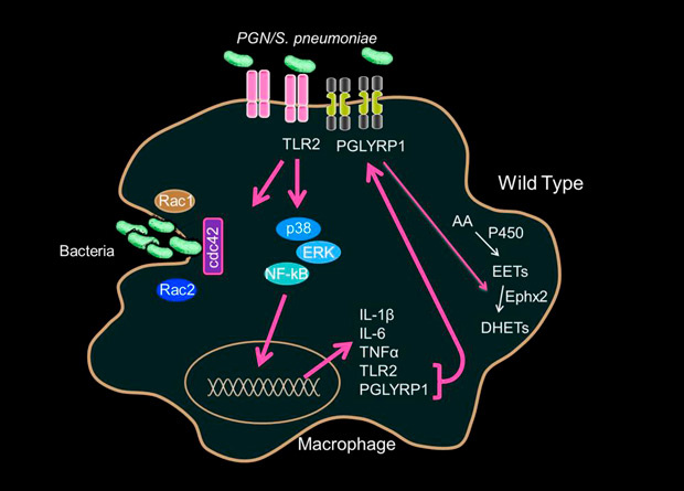 Высокая активность иммунного ответа организма на патоген может повредить клетки и ткани хозяина. Чтобы этого не произошло, макрофаги секретируют специальные медиаторы, способные как усиливать воспаление, так и снижать его. К таким медиаторам относятся эпоксиэйкозатриеновые кислоты (EET), которые обладают высокой противовоспалительной активностью. Чтобы контролировать ее уровень, макрофаги также секретируют эпоксигидролазу, которая гидролизует ЕЕТ до менее активной формы — дигидроксиэйкозатриеновых кислот. Таким образом, эпоксигидролаза играет важную физиологическую роль в регулировании уровней липидных сигнальных молекул. Тем не менее до сих пор непонятно, как эти молекулы влияют на активность и чувствительность к патогенам самих макрофагов.