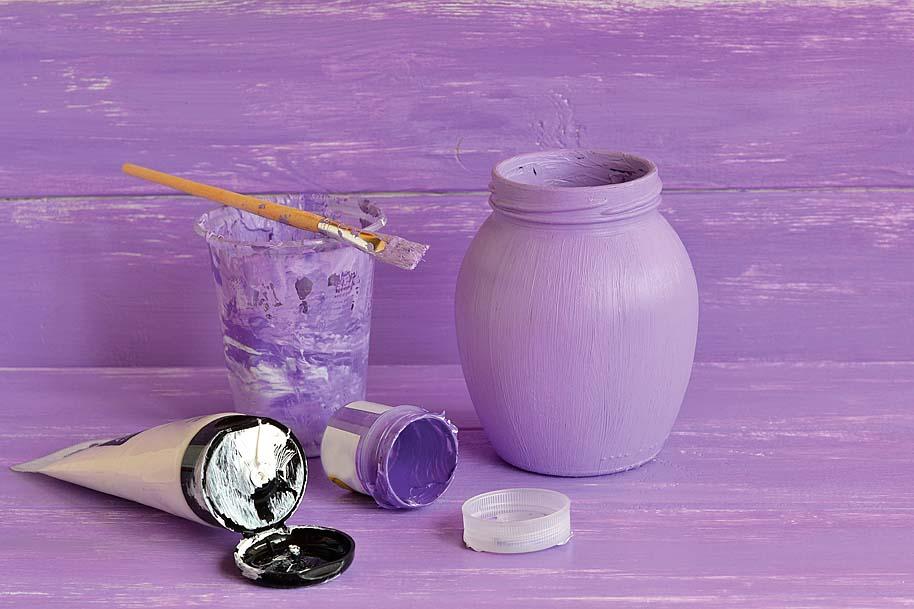 Считаешь, что прозрачные банки смотрятся простовато? Проблема решаема – просто покрась их. Лучше всего для этой цели подойдут акриловые или водоэмульсионные краски. С их помощью можно создать как однотонное изделие, так и более оригинальное. Причем с краской одного цвета (без лишних трат). Как это сделать? Оклей банку по кругу бумажным скотчем, покрась и после высыхания краски аккуратно сними скотч. Получатся ровные полоски. По этой же схеме можно вырезать из скотча кружочки, сердечки или контуры зверюшек.