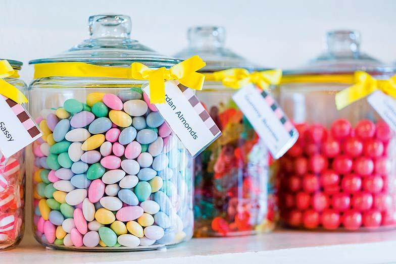 Банки на полке, наполненные ярким драже или печеньем, выглядят как настоящий элемент декора.