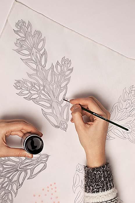 На темных фактурах краска видна плохо, поэтому выбирай ткани светлых оттенков.