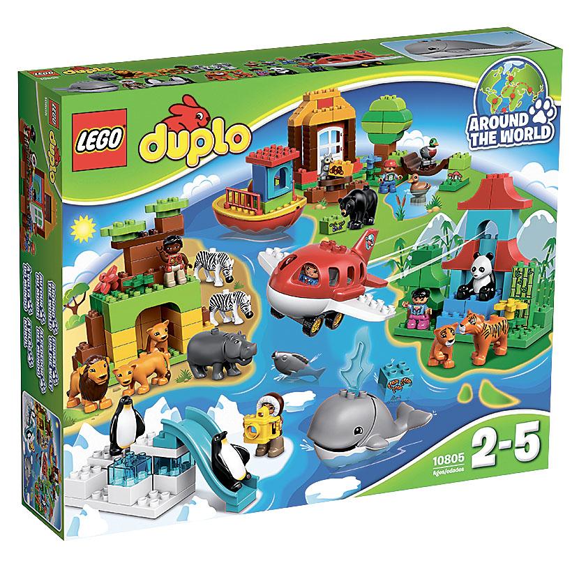 Набор LEGO DUPLO «Вокруг света» познакомит малышей с миром диких животных со всего света и поможет родителям показать многообразие живой природы. Маленькие исследователи смогут путешествовать по разным странам на лодке или самолете. Из Африки с зебрами, бегемотом и семейством львов они смогут направиться в Азию и полюбоваться на панд и тигров, выглядывающих из зарослей бамбука. Потом они смогут переместиться в Европу, чтобы увидеть бурого медведя и покормить белку и уточку. Еще им откроется возможность понаблюдать за катающимися с горки пингвинами в Антарктиде и увидеть большого кита. Такая увлекательная и познавательная поездка вокруг света подарит малышам новые впечатления и эмоции и позволит узнать много нового о мире вокруг!