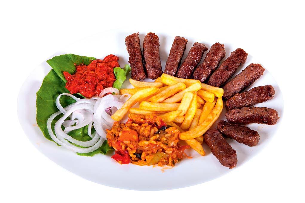 В меню всегда есть чевапи или чевапчичи (мясные колбаски на гриле), плескавицы (аналог котлеты), пирог бурек, пршут и соленый сыр.