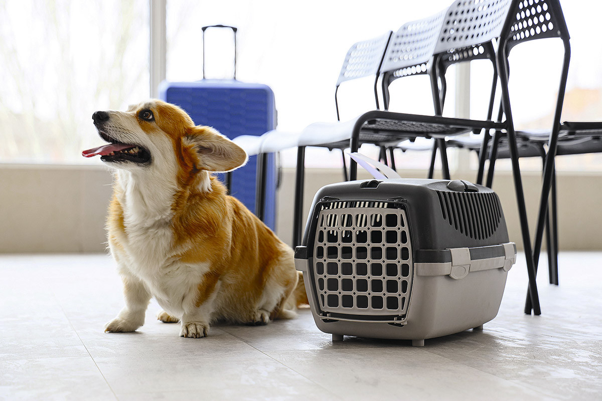 Непосредственно перед выездом с собакой стоит подольше погулять, чтобы она успела справить нужду и набегаться. В последний раз покормить нужно за 10 часов до выхода из дома. В аэропорт лучше приехать заранее, за 3–4 часа до вылета, чтобы успеть без спешки оформить все необходимые документы и пройти проверку. Если пес плохо переносит дорогу, дай ему успокоительное средство за полчаса до вылета.