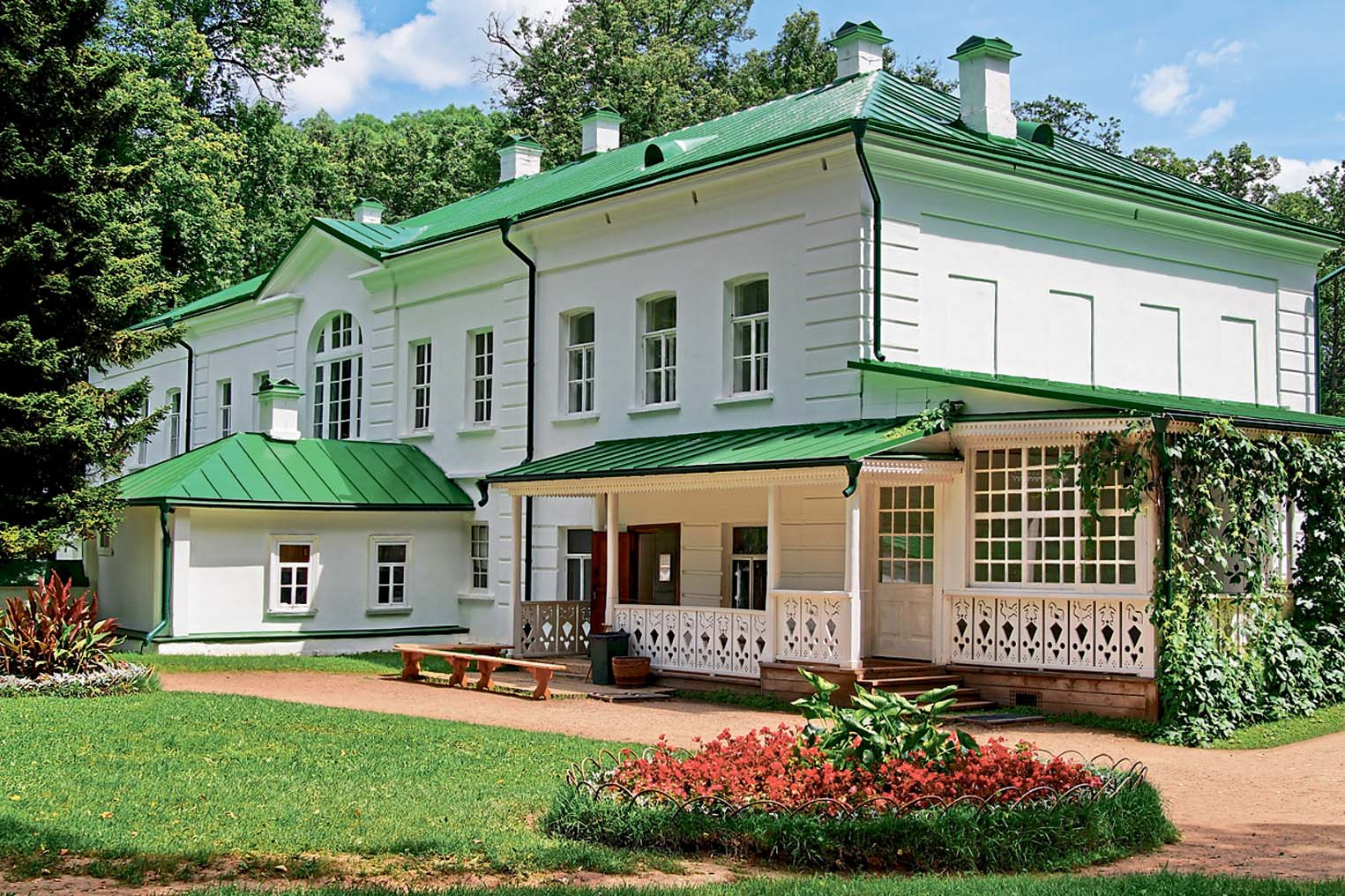 Центром русской культурной жизни усадьба становилась дважды. Впервые, когда Абрамцево приобрел Сергей Аксаков. Вдохновляющую силу этих мест он прочувствовал на себе: здесь создана его сказка «Аленький цветочек». Позже имение покупает Савва Мамонтов, известный промышленник и меценат. Вокруг него собирается творческое объединение, которое стало известно как Абрамцевский художественный кружок. Друзья-художники Мамонтова с удовольствием приезжали в его поместье на природу и находили здесь не только сюжеты для картин, но и моделей. Именно Вера Мамонтова, старшая дочка хозяина поместья, изображена на полотне Валентина Серова «Девочка с персиками». Пейзажи абрамцевской усадьбы легко узнать на картинах Михаила Нестерова и Исаака Левитана. Холмы, аллеи, каскад прудов с очаровательными мостиками... Здесь можно погрустить у воды, изображая Аленушку – героиню знаменитой картины Виктора Васнецова. Кстати, художник писал свою работу в Абрамцево. Маленькие посетители любят позировать у беседки «Избушка на курьих ножках». Того и гляди отсюда выглянет Баба-яга.