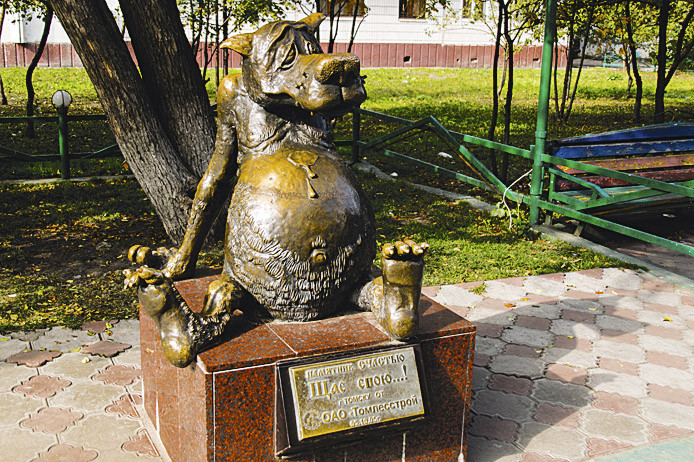 Памятник счастью, Томск. Другое его название «Щас спою…». Воплощением полного счастья служит тот самый волк из популярного мультфильма «Жил-был пес».